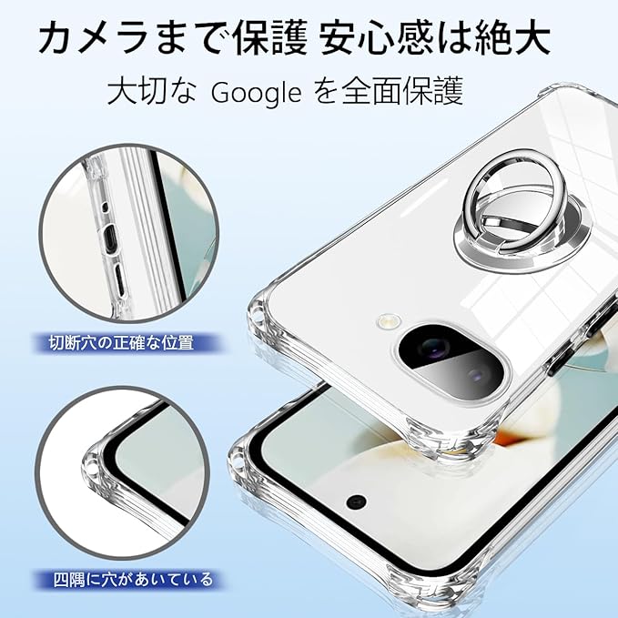 【 高い透明度 】 ケースは特別に開発されたハイテクTPU素材で作られています。 透明度が高く、本体の鮮やかな色をそのまま映し出すことができ、Google Pixel 9aのオリジナルのカラーを損ねません。ケースの端はダイヤモンドカットプロセスを施すことでより洗練された美しい外観となっています。ケースは、型どりを緻密に実施しており、google 8aを保護しているのです。