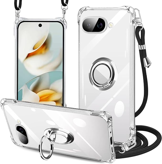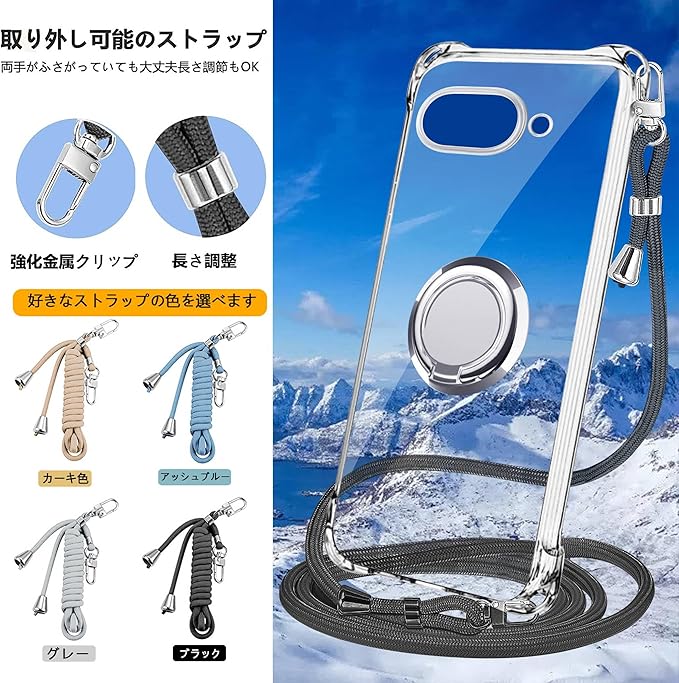 Google Pixel 9a ケース クリア ネック リング付き ショルダー pixel 9a ケース 耐衝撃 対応 ピクセル9a スマホケース 肩掛け 斜めかけ 縄掛けケース 透明 TPU ストラップ付き 携帯ケース 薄型 軽量 紐付き ネックストラップ ショルダー 肩掛け 縦/横 2WAY 長さ調整可能 取り外し可能 落下防止(縄掛け-ブラック)