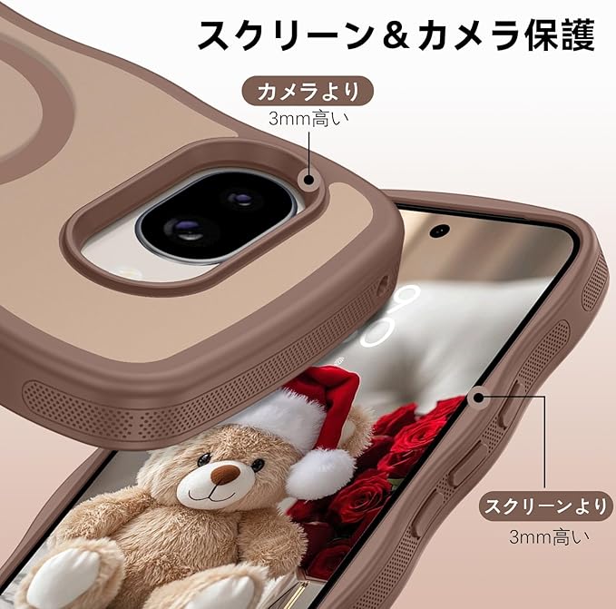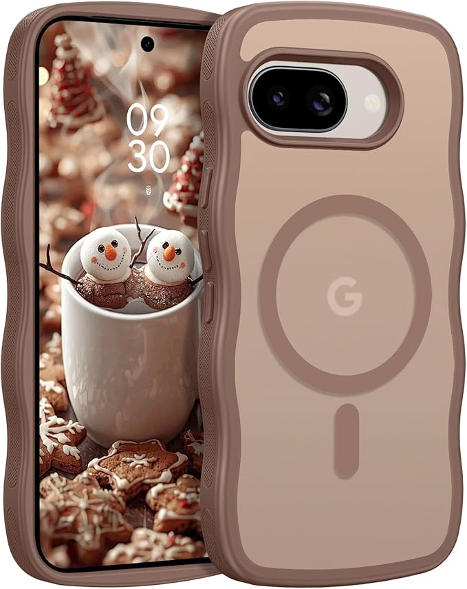 Telaso Google pixel 9A ケース ウェーブ 半透明 MagSafe対応 可愛い グーグル ピクセル9a ケース 波状 ワイアレス充電対応 黄変防止 レンズ保護 滑り止め マット感 薄型 ブラウン