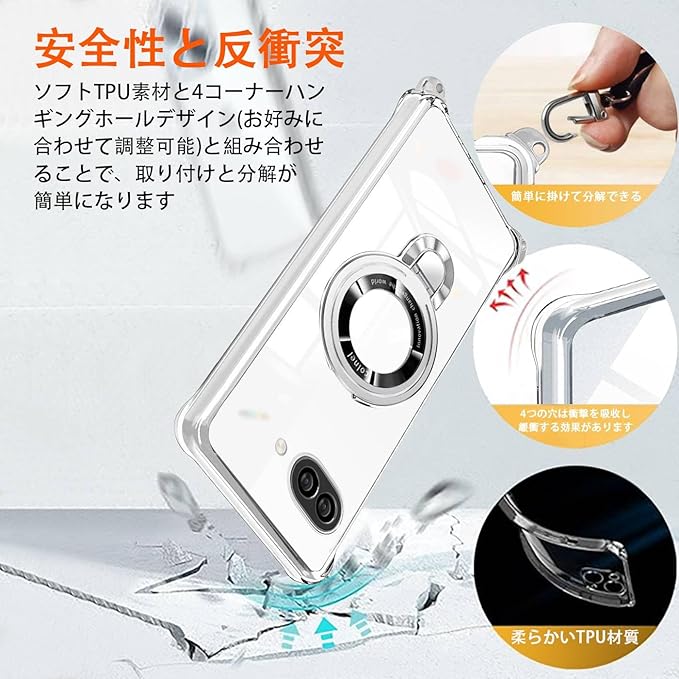【対応機種】Google Pixel 9A/ピクセル9a 専用設計。透明な背面、場所、カメラ、磁気リングはすべて高材質の材料で作られています。薄くて丈夫で柔軟性が高く、程よいグリップ感があり、本体の持つスリムさをできる限り損なわないよう設計しています。