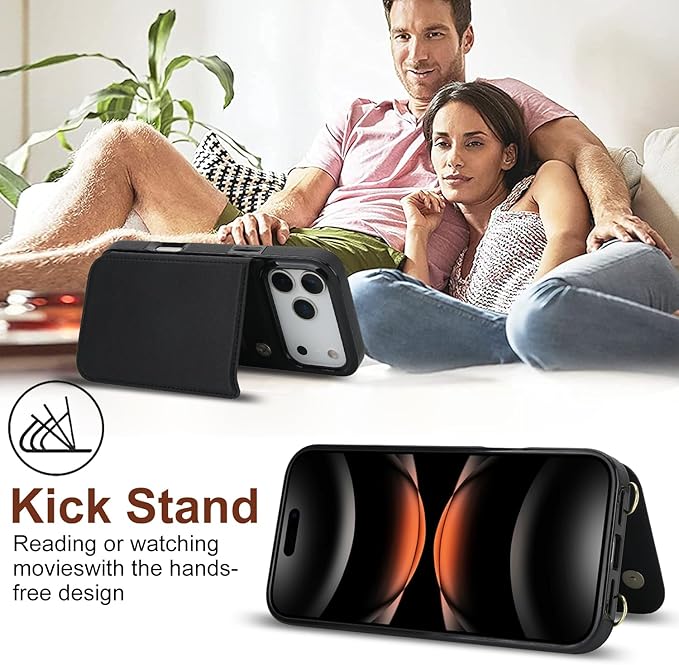 適用 iphone 17 pro Max ケース ショルダー 窓口式 カード入れ スマホケース ストラップ付き アイフォン17プロマックス カバー 手帳型 斜めがけ 可愛い iphone17proMax ショルダーケース 首かけ 肩掛け かわいい おしゃれ RFIDスキミング防止機能 ロング クロスボディ 携帯カバー ブラック