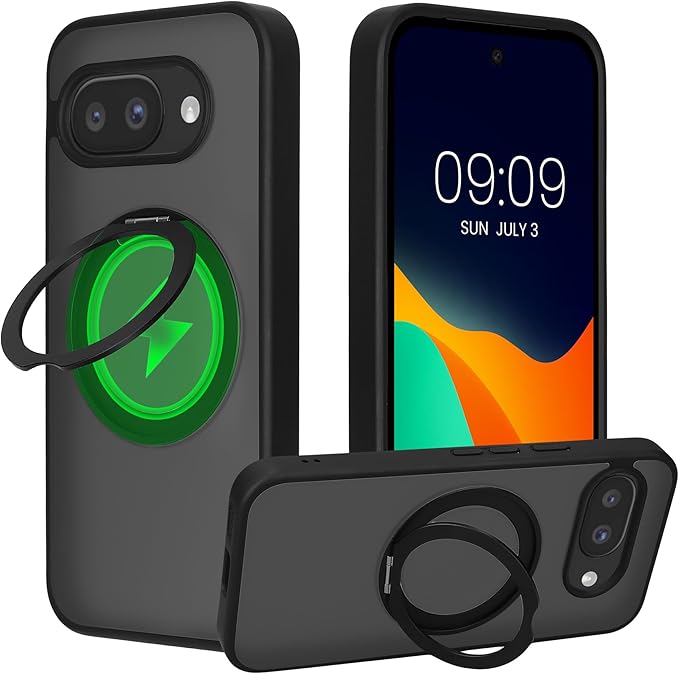 商品タイトル(最適化済み)kalibri スタンドリング付きスマホケース - Google Pixel 9a 対応 360 回転式キックスタンド ハードケース MagSafe対応 - 黒色/半透明