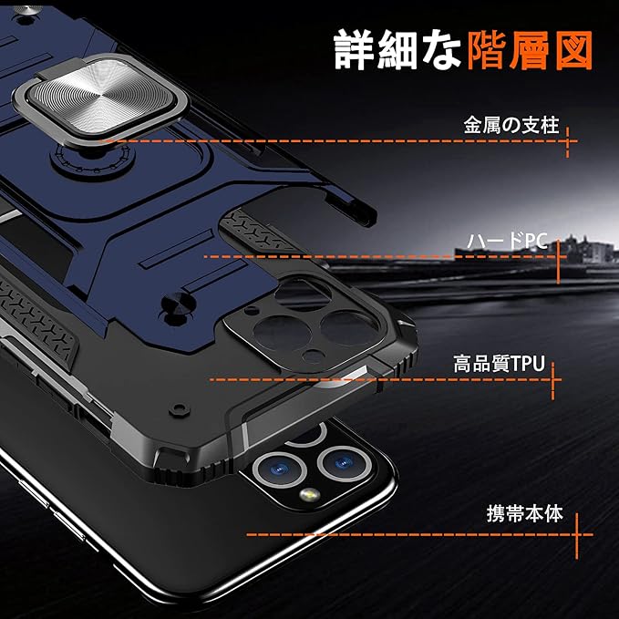 【保護】 このスマートフォンケースはスマートフォンの力強い守護者です。硬派な外観ラインを持ち、まるでスマートフォンに堅固な鎧を着せたようです。優れた材料を使用して作られ、スマートフォン本体に密着し、全方位の保護を提供します。四隅とフレームは強化設計されており、日常の使用中、たとえスマートフォンが不注意に滑落したり、衝突したりしても、しっかりと外界の衝撃力を緩和し、本体の損傷を減らすことができ、常にスマートフォンの安全を守り、あなたが外出する際に心配なく使用できるようにしています
