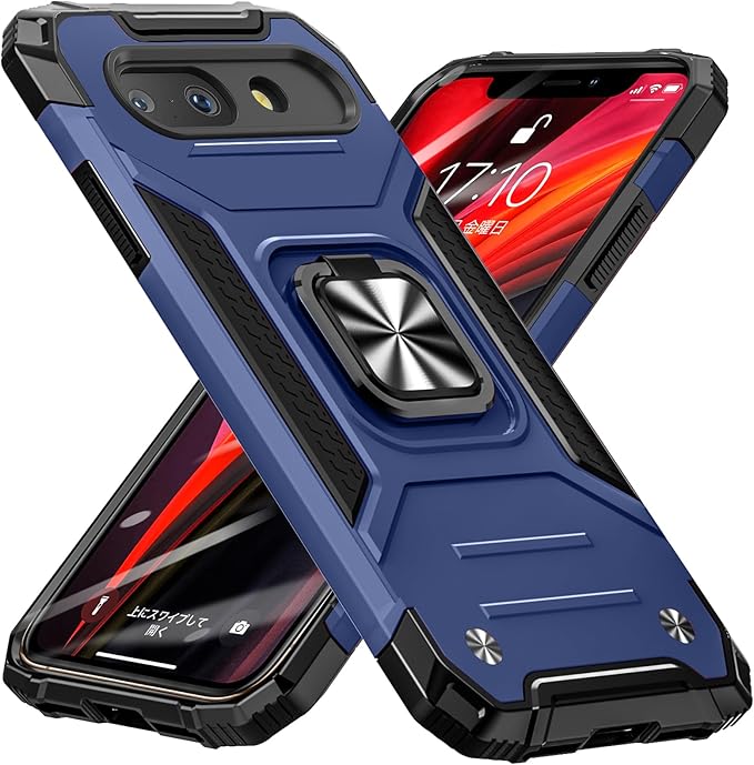 Google Pixel 9A 用 ケース リング PC+TPU 米国軍事MIL標準取得 衝撃吸収 耐衝撃 落下防止 スタンド機能 二重構造 防塵 薄型 軽量 一体型 360度回転 全面保護カバー ピクセル 9a 用 ケース 青 W-KM-60-03
