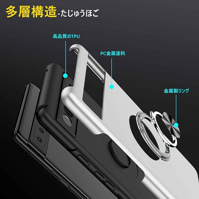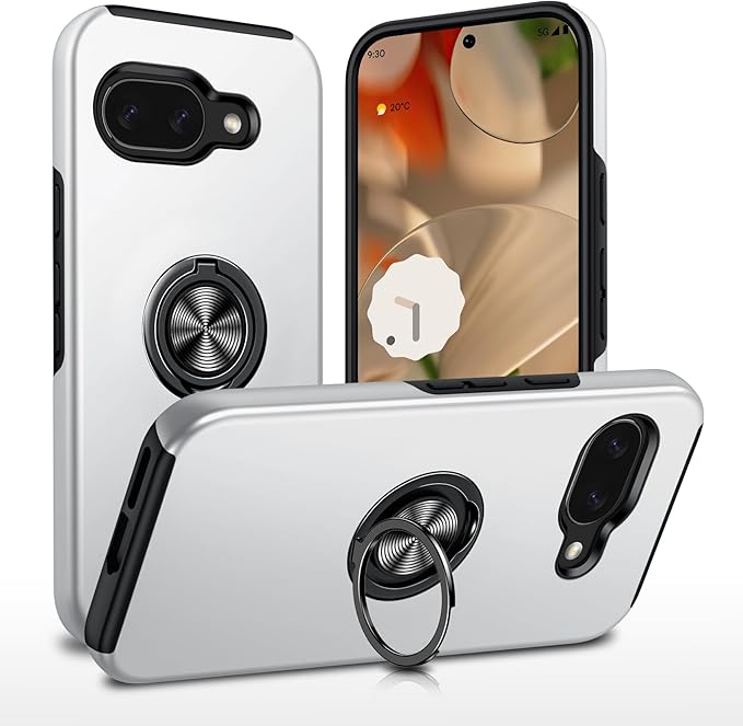 Google Pixel 9A 用ケース リング 耐衝撃 衝撃吸収 全面保護カバー TPU+PCバンパー 二重構造 米軍MIL規格 車載ホルダー対応 擦り傷防止 滑り止め 薄型 軽量 グーグル ピクセル 9a 用カバー 耐久 指紋防止 おしゃれ 人気 携帯カバー 銀 MZ86-09