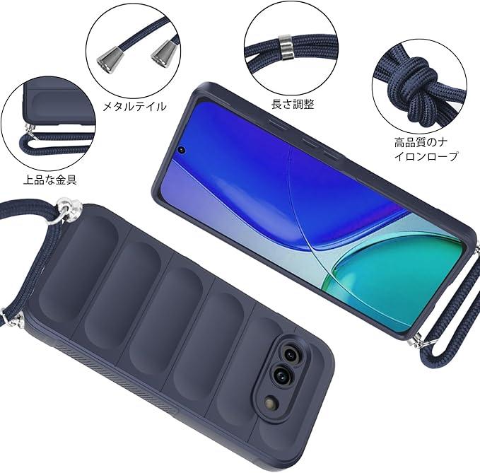 Google Pixel 9a ケース ネックストラップ 耐衝撃 肩掛け 斜めかけ 首掛け 縄掛け カバー グーグル ピクセル 9a スマホケース シリコン TPU ストラップ付き 軽量 長さ調整可能 取り外し可能 指紋防止 落下防止 衝撃吸収 ワイヤレス充電対応 Google Pixel 9A カバー【縄掛け-ミッドナイトブルー】