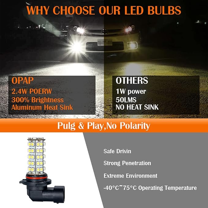 1.【製品情報】:【型番】H11 / H8 。【明るさ】1500Lm/個。【チップ】1つのLEDランプには、68つの3528のSMD-LEDチップがあります。【照射角度】360 。【光色】ホワイト(6000K-6500K)。【パワー】16W 。【対応電圧】DC12V.