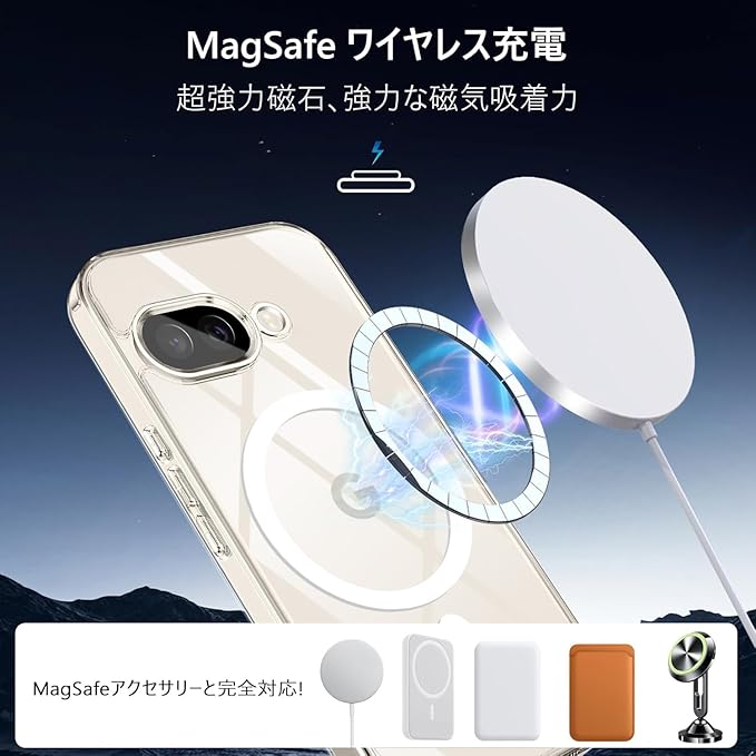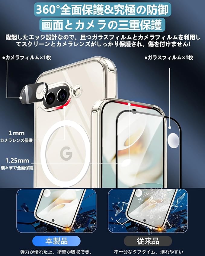 Google Pixel 9A ケース MagSafe対応 ガラスフィルム セット ワイヤレス充電 耐衝撃 マグネット搭載 ピクセル9A ケース マグセーフ対応 耐久性 黄ばみなし 滑り止め 指紋防止 ストラップホール付き カバー クリア