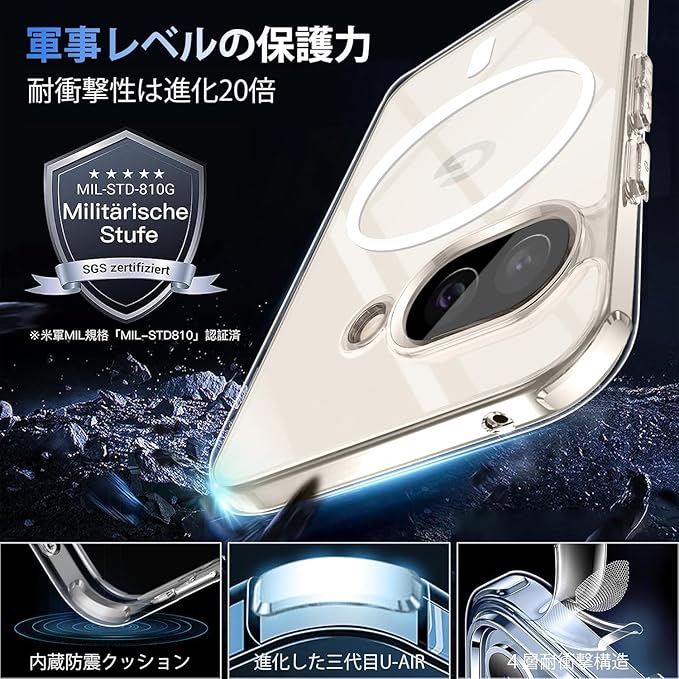 【超高耐衝撃性・全面の保護】環境に優しく、無毒無味の高品質素材採用、TPU素材とハードPCで制作するため、耐久性に優れた、外部からの衝撃を内部に吸収されて、側に滑り止めの設計で、落下を防止にできます。四角内部に防振クッションを搭載され、四角外部には物理耐衝撃構造設置することで、衝撃吸収性能を倍アップ!落下してもスマホをしっかりと守れます。圧倒的な耐衝撃性を誇り、スマホを全方向からしっかりと保護できす。