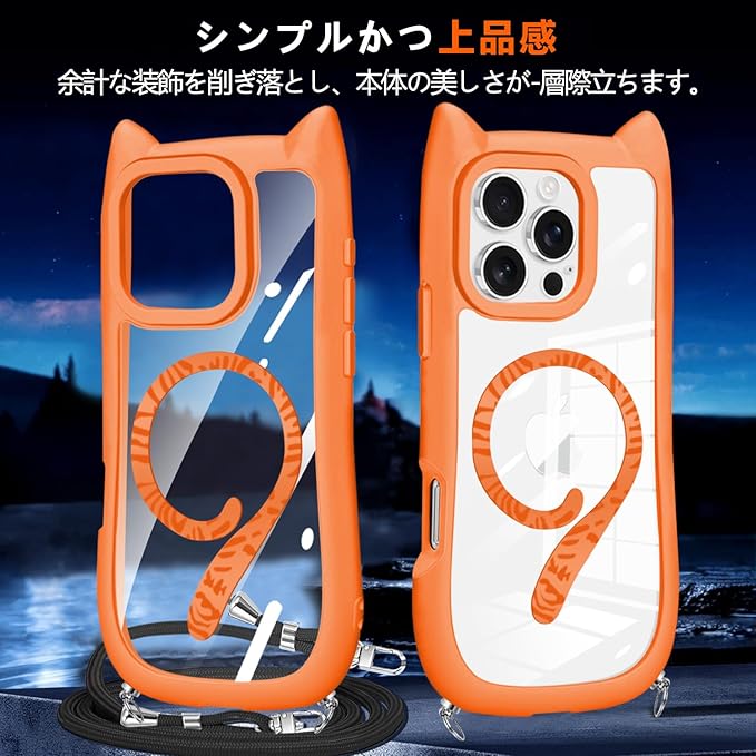 iPhone 17 Pro Max 用 ケース クリア MagSafe対応 PC背面 + TPUバンパー ワイヤレス充電 ネック ショルダー あいほん17promax カバー 肩掛け 首掛け 斜めがけ 紐付き 韓国 かわいいファッション 耐衝撃 米軍MIL規格取得 落下防止 透明 TPU 薄型 軽量 アイフォン 17Promax スマホケース