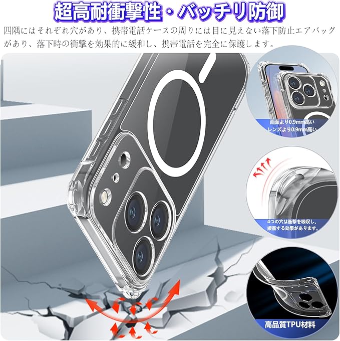 【高品質な素材】この透明な携帯ケースは、柔らかいTPU素材を採用して作られており、スマホ本体に近い手触りを感じることができ、持ち心地も快適です、落下のリスクも減らします。酸化を防ぐ特殊加工を使って、黄ばみにくく、透明感を長期間保持します。本商品は端末に触れるケース裏側に極小さな微粒子上の突起処理を行い端末の発熱を軽減する散熱加工を行っております、気泡の発生も防ぎます。