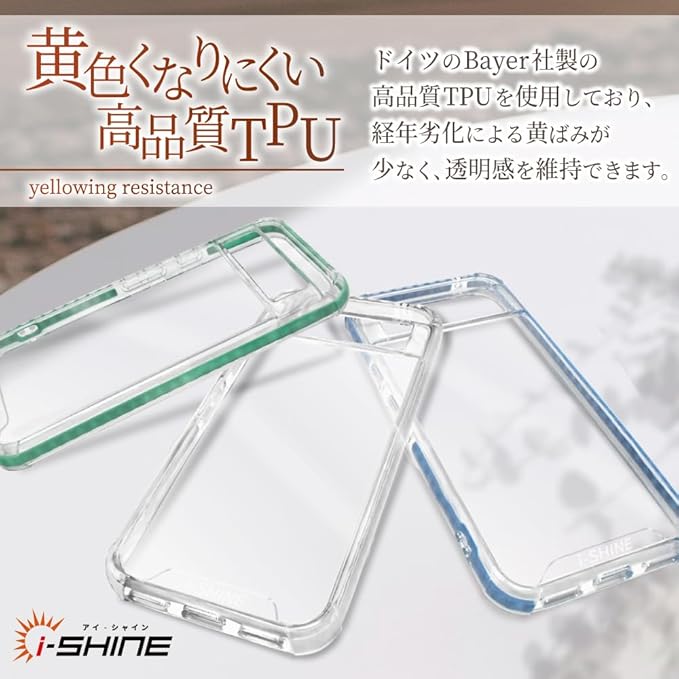i-Shine(アイシャイン)ケースはTPU部分が黄ばみにくいドイツ産Bayer社製の材料を採用。