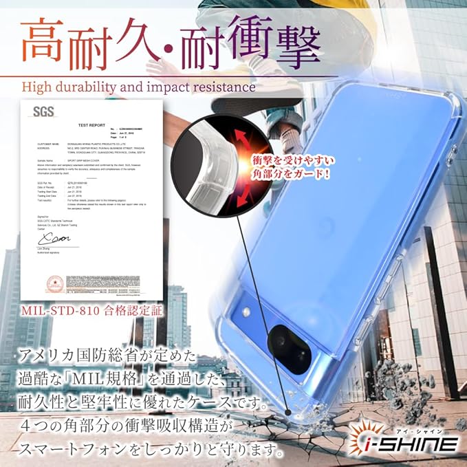 耐衝撃性、耐傷性に優れたスマホケースになっています。
