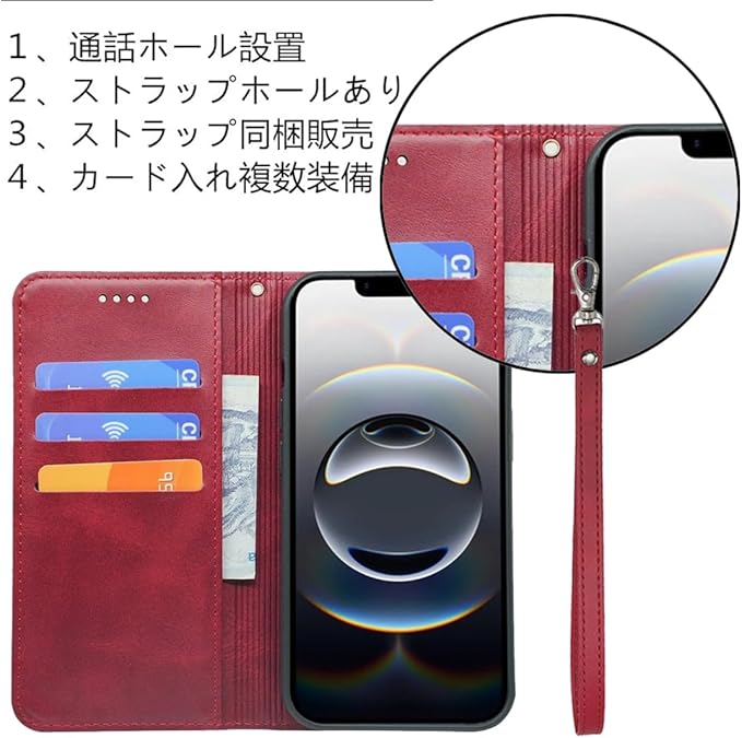 Pixel 9a ケース 手帳型 適用 【 Xungoujp ストラップ付き カード入れ 財布型 】 Google Pixel9A スマホケース 手帳 耐衝撃 グーグル ピクセル 9a case カバー PUレザー 内蔵マグネット 弱磁 ストラップホール スタンド機能 携帯カバー レトロ レッド