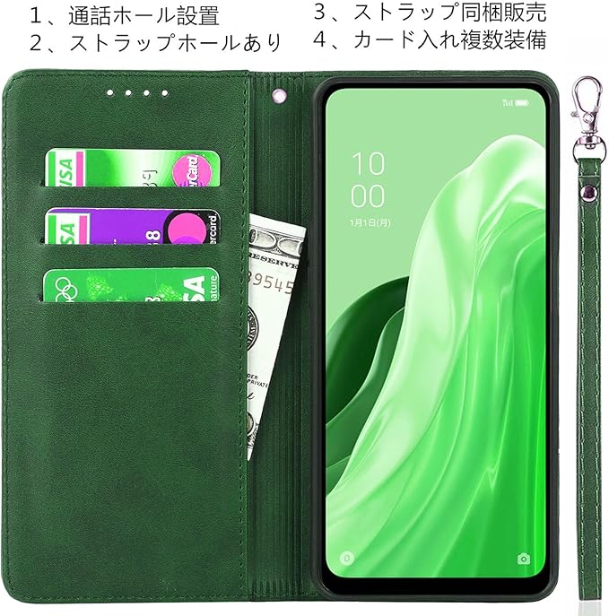 BonwFzin 適用 Google Pixel 9a ケース 手帳型 ストラップ グーグル ピクセル 9a スマホケース ピクセル9a 手帳型カバー Pixel9a 携帯カバー PU レザー ストラップホール付き マグネット フリップ カード入れ カード収納 スタンド 落ち着いた色 レトロ グリーン