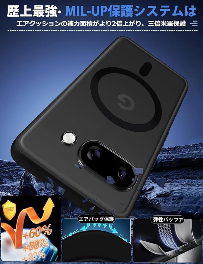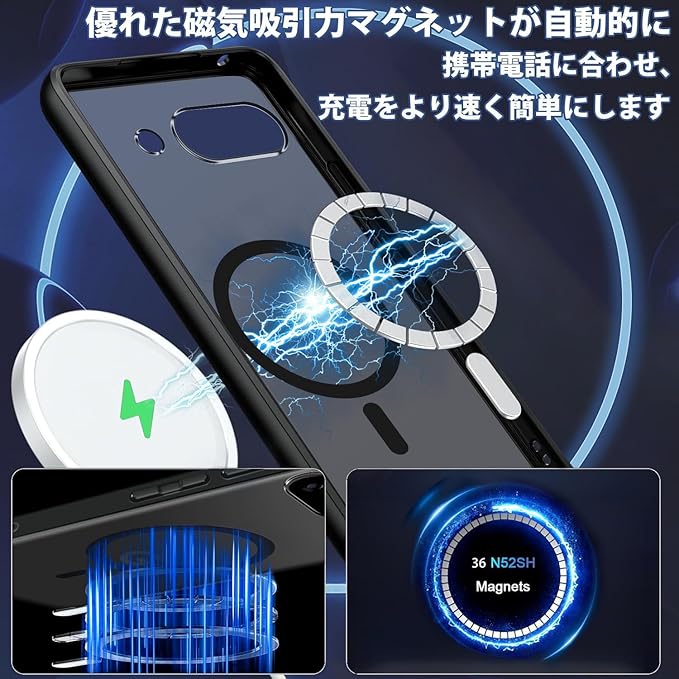 For Google Pixel 9A 用 ケース MagSafe対応 マグセーフ ワイヤレス充電 マット ブラック 半透明 マグネット搭載 TPU PC 落下防止 衝撃吸収 滑り止め 防塵 耐久性 黄ばみなし 耐衝撃 全面保護 レンズ保護 グーグル ピクセル 9a 用 カバー