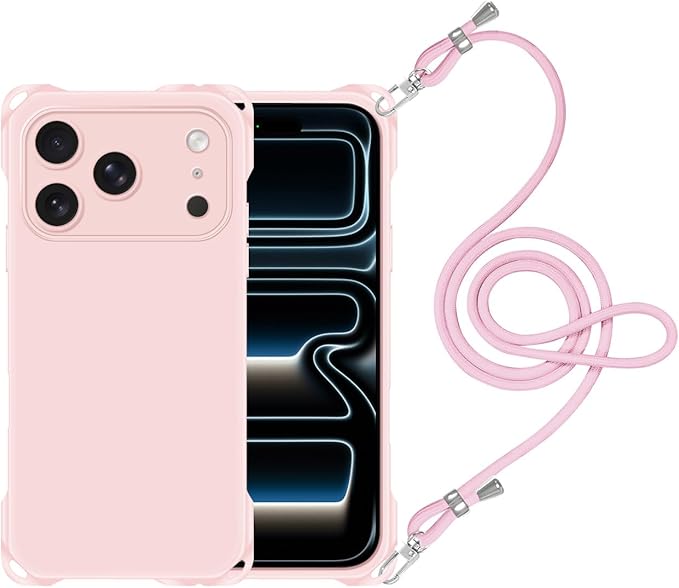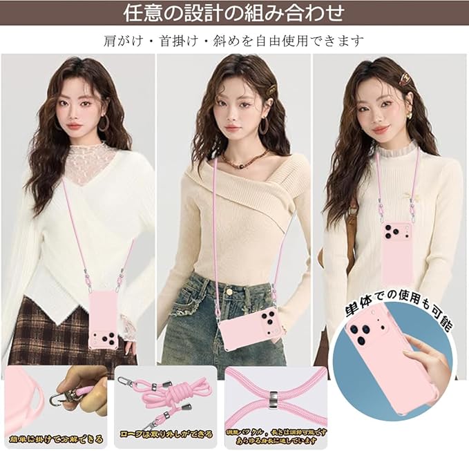 iPhone 17 Pro Max 用 ケース ショルダー いphone17promaxケース ストラップ 調節可能な アイフォン 17ProMax 肩がけ 首掛け 紐付き 斜めがけ 縄掛け スマホケース あいふおん17 pro max カバー 耐衝撃 薄型 透明 シリコン TPU 保護 バンパー ストラップホール付き 縦/横 2WAY 取り外し可能 (ピンク)