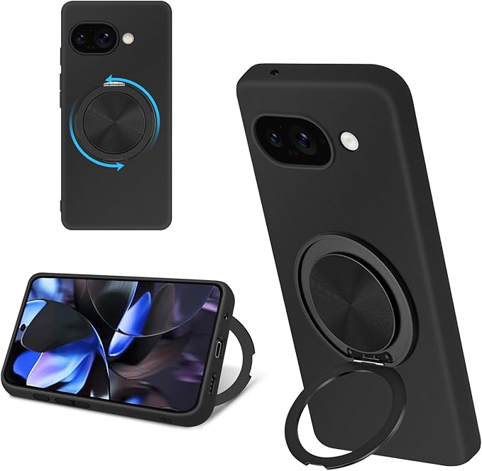 Google Pixel 9a ケース シリコン MagSafe対応 リング付き 360 回転スタンド 縦横両対応 アジャスタブルスタンド マット仕上げ 耐衝撃 スマホ ケース グーグル ピクセル 9a カバー 衝撃吸収ポケット内蔵 TPU 薄型軽量 ストラップホール付き google pixel 9a 保護カバー