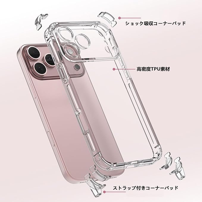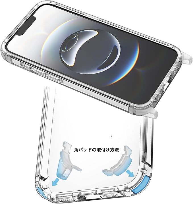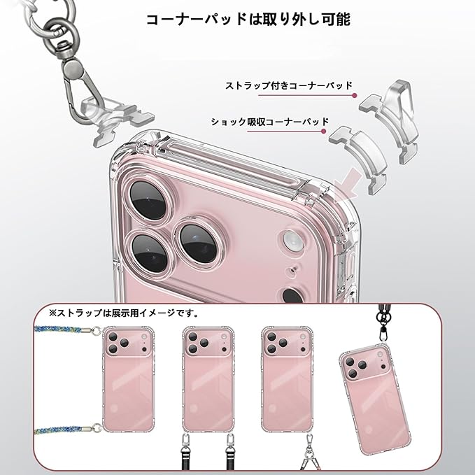 【自分だけのオリジナルケースにカスタマイズ】 4つの角パーツを自由に交換できるDIY設計。衝撃吸収に優れた「エアバッグコーナー」と、携帯に便利な「ストラップコーナー」をお好みで組み合わせ。1つのケースで、防仕様と持ち運び便利な仕様を簡単に切り替えられます。