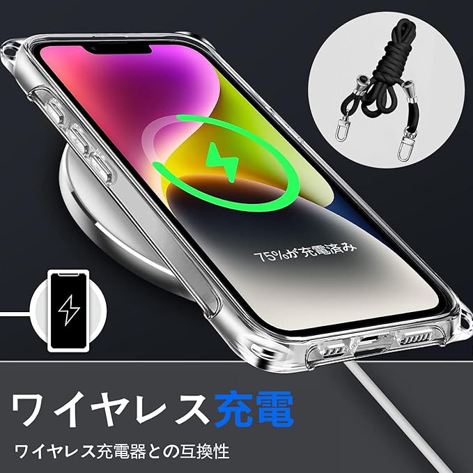 iPhone 13 Pro Max ケース クリア ネック ショルダー ストラップ付き iPhone13ProMax スマホケース iPhone13 Pro Max カバー 耐衝撃 薄型 軽量 TPUスマホ シリコン カバー 紐付き 斜めがけ 織りストラップ付き 肩掛け 縦/横 2WAY 調節可能なショルダー クロスボディ 多目的キャリー ファッションデザイン (透明)