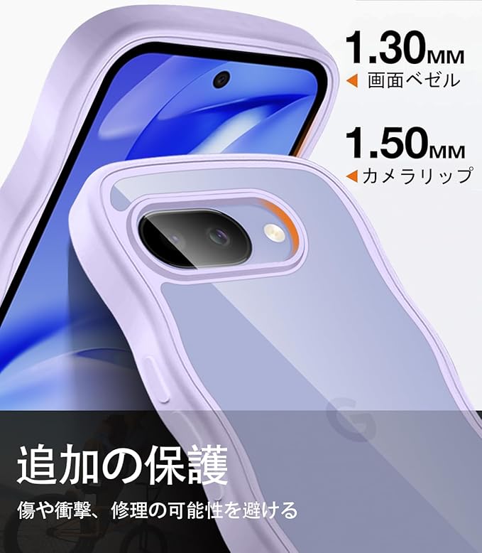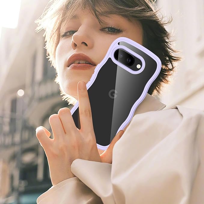 クリア Google Pixel 9A ケース かわいい 波状フレーム うねうね 耐衝撃 ピクセル 9A 滑り止め グーグル ピクセル9a スマホケース 人気 可愛い カバー 落下防止 ワイヤレス充電対応 (パープル)