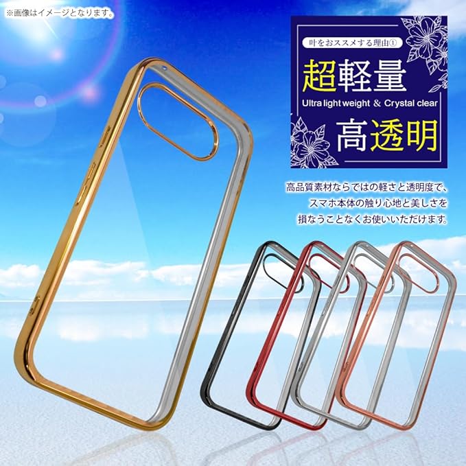 叶kanae カナエ Google Pixel 9a クリアケース ケース カバー サイドメッキ加工 クリア ケース 1個入り ゴールド クリア