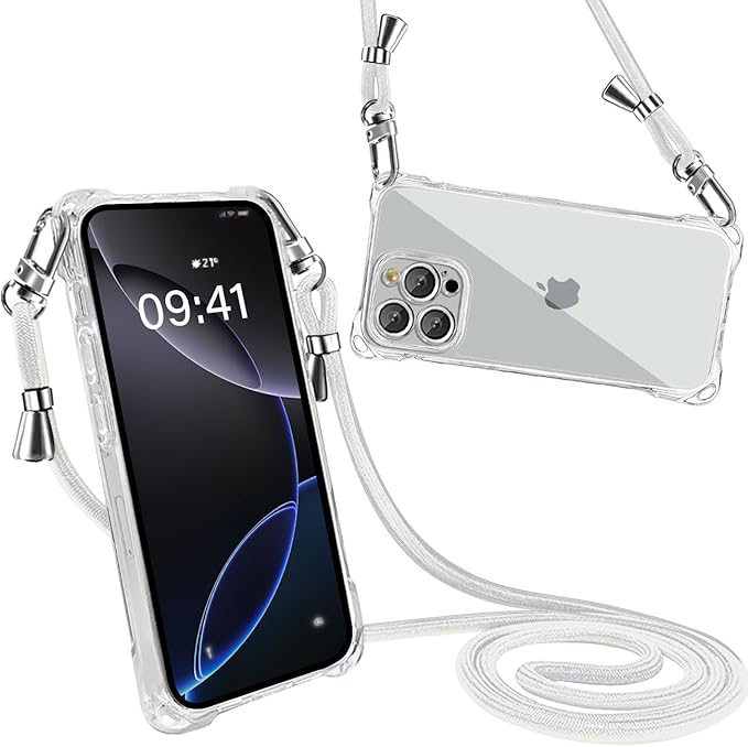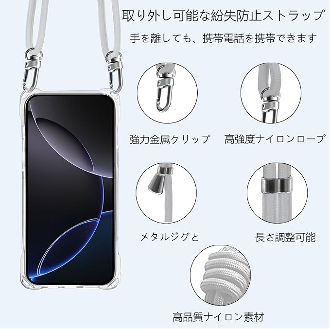 For iPhone 16 Pro Max 用 ケース ショルダー クリア 肩掛け アイフォン16 Pro Max 用 スマホケース ワイヤレス充電対応カバー 耐衝撃 透明 軽量 全面保護 人気 韓国 柔軟 高質感 (グレー)