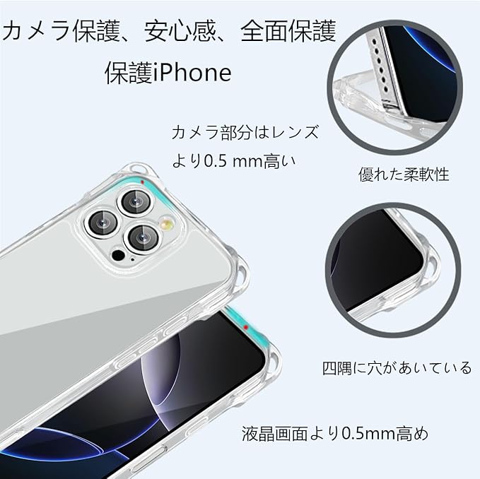 【スクリーン&カメラ保護】携帯電話ケースの凸状の縁とレンズカバーは、画面やカメラが落下したときに地面に直接触れないように保護します。堅牢なTPU素材は耐衝撃性が高く、落下時の携帯電話の衝突や擦れから保護します。