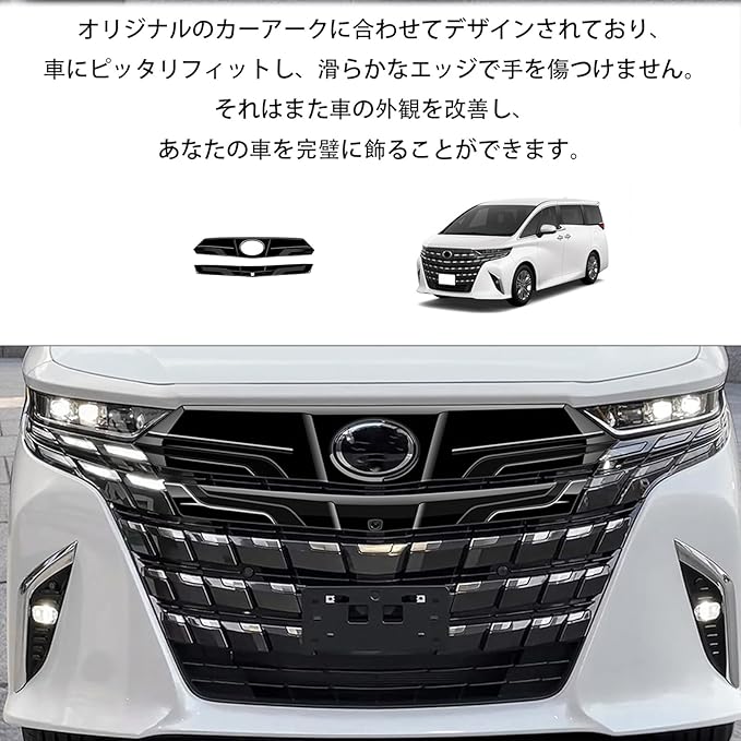 Partisan 新型アルファード40系ヴェルファイア40系に対応 フロントバンパー 装飾パーツ 傷付き防止グリルガードドレスアップカスタムアクセサリーABS 2枚 ブラック