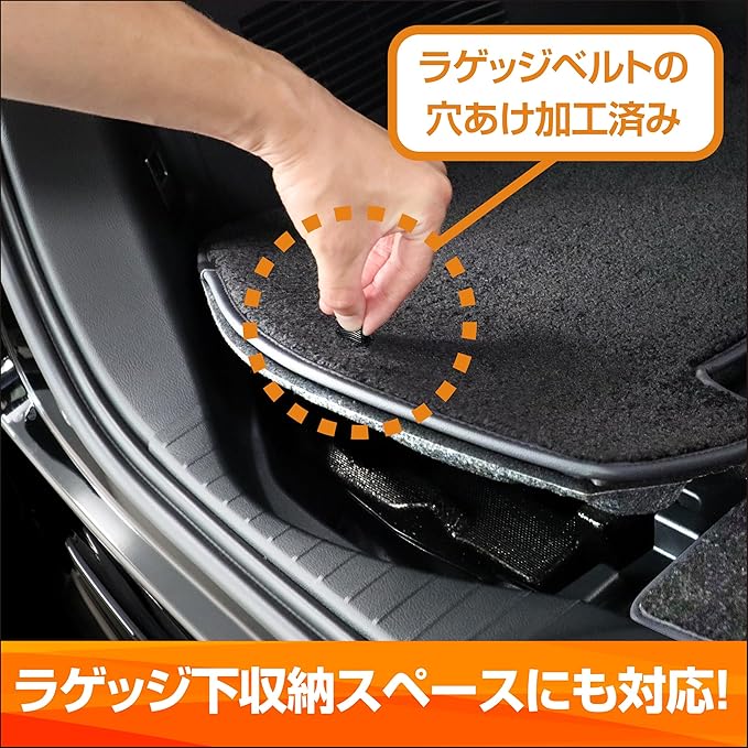 Amazon専売モデルのフロアマット。ブラックの生地にブラックPVCバイアスがアルファードハイブリッドの高級感にぴったりです。