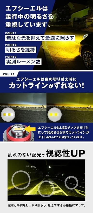 fcl.(エフシーエル) L1B フォグランプ led 新型 純正 交換用バルブ 2色切り替え 黄色 ライムイエロー ホワイト フォグ 後付け 車検対応 メモリー機能 左右分 2個セット