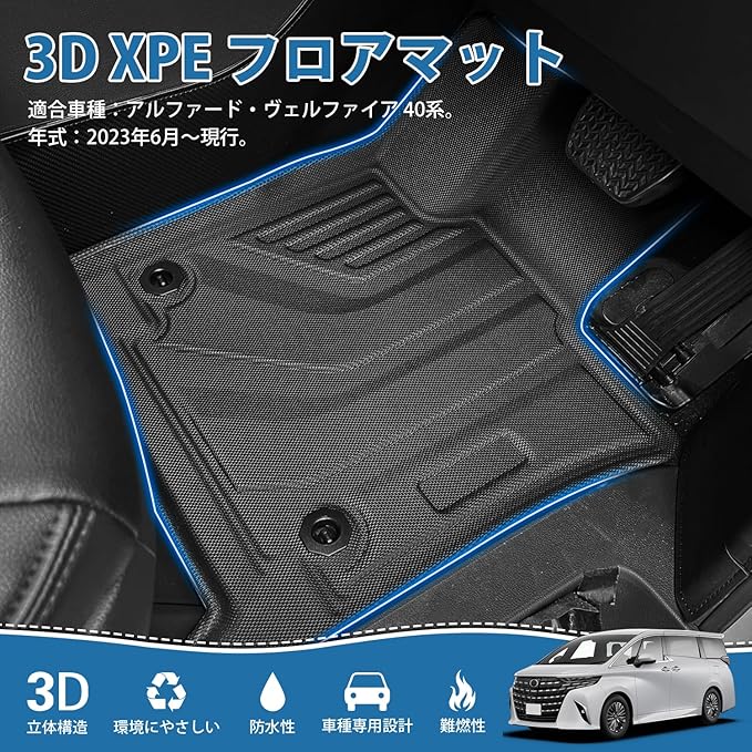 トヨタに適合 アルファード 40 / ヴェルファイア 40 フロアマット XPE+TPE 新型ラバータイプ ハイブリッド R5年6月~現行 ALPHARD 40 / VELLFIRE 40 3Dフロアマット車種専用 カーマット 防水仕様 耐汚れ 抗菌性 耐磨耗性 カスタムマット 保護パーツ 3PCS