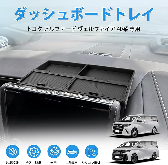 Auto Spec トヨタ アルファード ヴェルファイア 40系 専用 ダッシュボードトレイ コンソールトレイ 蓋付き 収納ボックス ダッシュボード収納 シリコン製 小物入れ 仕切り設計 水洗い可能 車種専用設計 アクセサリー カー用品 内装 パーツ 車内空間活用 取り付け簡単