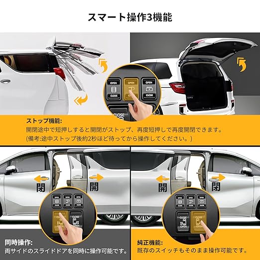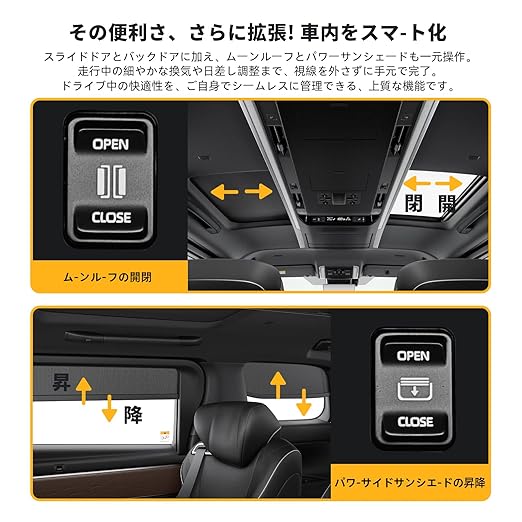 【純正安全ロジック準拠|ワンタッチのスマート操作で、家族もドライバーも快適】単なる後付けではなく、純正の安全設計と操作ロジックに準拠。ドア開閉中もワンタッチで安全に一時停止可能です。アルファード40系・ヴェルファイア40系の利便性を、安全に拡張。運転席からの集中操作で、走行中の細かい換気や日差し調整もシームレスに管理でき、家族の快適な乗降りサポートと、ドライバー自身の上質な運転体験を両立させます