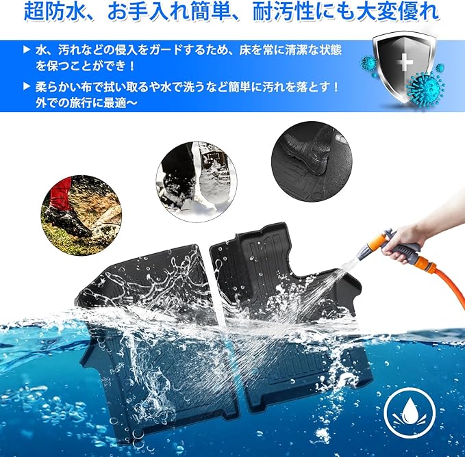3.【3D立体構造・防水仕様】水、汚れなどの侵入をガードするため、本製品は3D立体構造を採用し、床を常に清潔な状態を保つことができます。また、耐摩耗性と耐汚性にも大変優れて、お車の床を保護し、外での旅行にも最適です。防水性に優れたため、汚れたら、柔らかい布で拭い取ったり、水で丸洗ったりして簡単に汚れを落とすことが出来まして抗菌効果も素晴らしいです。サーフィンや海水浴・スキーなどのアウトドアシーンや部活や習い事の送り迎えなどで活躍します。アウトドアが好きな方にオススメ、ぜひ体験してみてください。