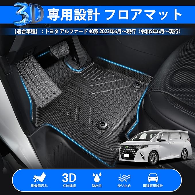 トヨタ 新型 アルファード 40系 フロアマット 1列目用 7人乗り専用 カーマット TPE材質 立体成型 車用 3Dフロアマット 右ハンドル車 TOYOTA ALPHARD 40系 2023年6月~現行 セカンドマット 防水 耐汚れ 耐摩擦 抗菌性 内装 カスタムパーツ 保護パーツ 2PCS ブラック