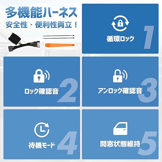 【全窓開閉等全14機能搭載で利便】ウィンドウ自動開閉・カミングホーム・循環ロックなど全14機能搭載で真夏の炎天下、乗車前換気可能になる一方、ヘッドライト自動点灯、夜間も安全性UPできます。さらに、自動再ロック機能、買い物時も安心!色んなシーンでも活躍できるアルファード・ヴェルファイア40系多機能ハーネスです。