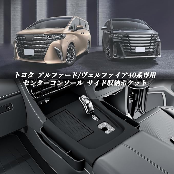 BIBIBO 新型トヨタ アルファード40 専用 コンソールトレイ 隙間収納 サイドポケット ヴェルファイア 40系 シフトパネル シリコン製マット アルファード40系 アクセサリー センターコンソールトレイ 収納ボックス キズ 汚れ防止 滑り止め カスタムパーツ 装着簡単