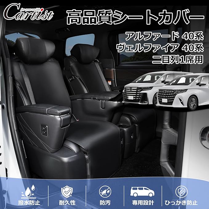Cartist トヨタに対応 アルファード ヴェルファイア 40系 に適用 シートカバー 車用 シートカバー フルサラウンドシート ALPHARD VELLFIRE 40系 2023年6月~現行 車種専用設計 カーシートカバー 座席カバー 二目列用 取付簡単 シート保護 カー用品 カーアクセサリー 1席分 (ブラック)