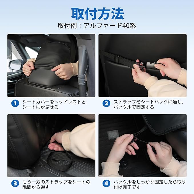 4.【専用設計で高級感アップ】アルファードのシートサイズや形状に基づいて精密にパターン化されており、シートに完璧にフィットし、純正品のような仕上がりを実現します。取り付け後もシートの調節機能に影響を与えず、エアバッグの正常な作動を妨げないため、走行中の安全性を確保します。また、車種専用設計により、ワンランクの高級感を演出し、車内の雰囲気を簡単にアップグレードできます。