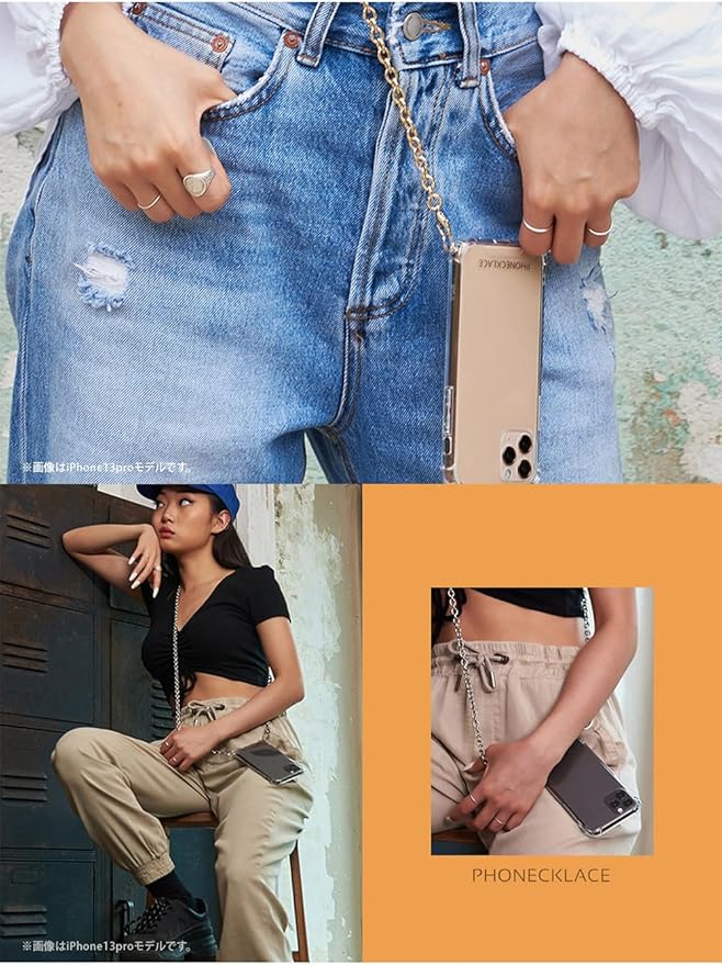 PHONECKLACE「チェーンショルダーストラップ付きクリアケース」は、肩や首からiPhoneをかけることができるクロスボディケースです。