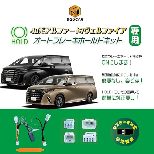 40系 アルファード/ヴェルファイア用 ブレーキホールドオート化キット ブレーキホールド機能常時オン オート化 モード切替 完全カプラーオン カスタムパーツ ポン付け 簡単取付