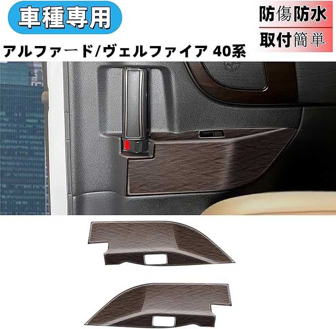 新型 アルファード/ヴェルファイア40系 に適合 アクセサリー 中門ウィンドウスイッチパネルカバー ドアパネルカバー 専用カスタム 内装パーツ (木目調ブラウン)