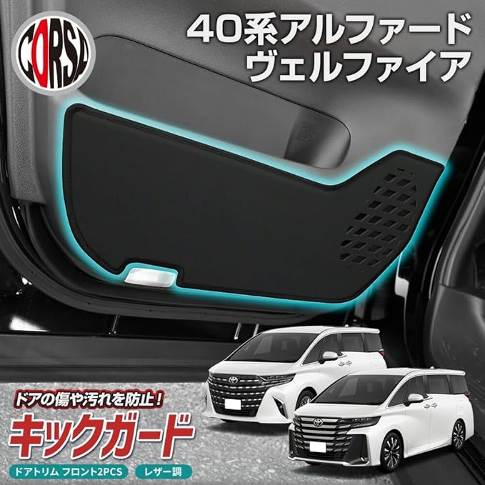 CORSA 40系 アルファード ヴェルファイア 専用 ドアトリムガード フロント 2PCS 黒レザー キックガード デザイン 傷防止 内装 縫製 日本製 保護 プロテクター コンソール アクセサリー トヨタ TOYOTA [5]-2 S