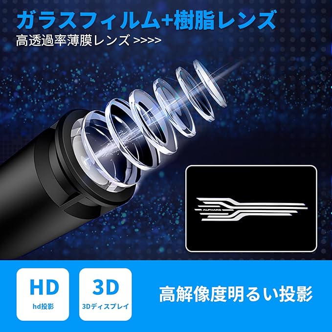【高品質クォーツガラス採用】投影レンズには耐熱性・耐久性に優れた石英ガラス(クォーツガラス)を使用。長期間使用しても映像がぼやけたり色落ちしにくく、安定した映像品質を保ちます。