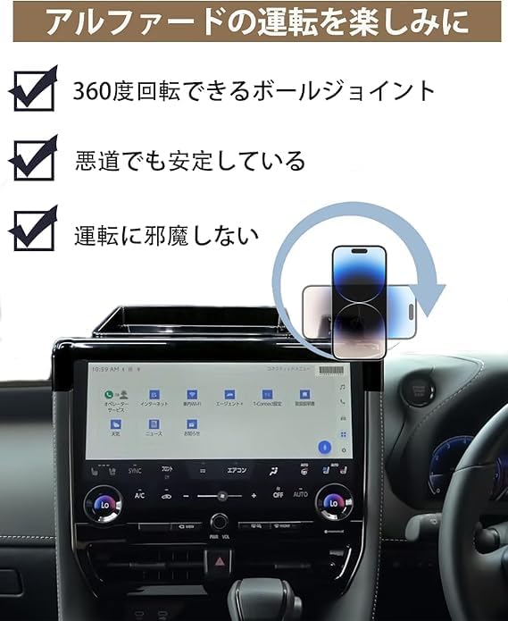 【40アルファード スマホホルダー】トヨタ アルファード/ヴェルファイア 4代目 AGH4#W/AAHH4#W型 14インチカーナビ 2023年ー現行