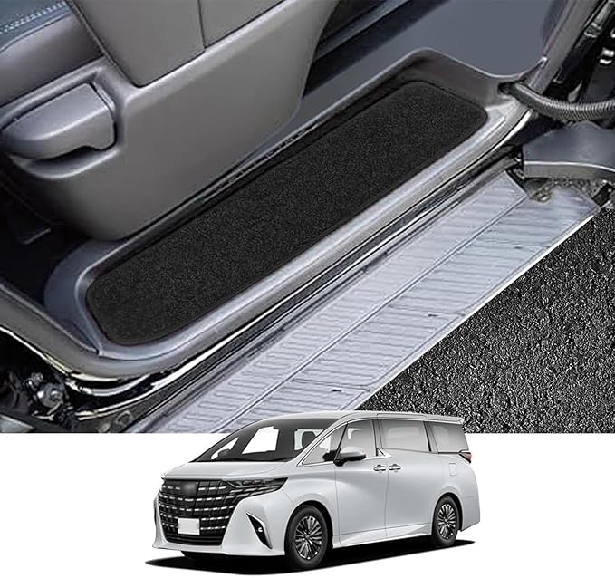 【適合車種】:トヨタ アルファード40系/ヴェルファイア40系 ALPHARD VELLFIRE 40系 適合。型式:AGH40W/AGH45W(ガソリン車)、 AAHH40W/AAHH45W(ハイブリッド車)。※マイナーチェンジ 全型式、全グレード対応。年式:2023年6月~現行(R5.6-現行)。セット内容:4枚セット(1列目+2列目ステップ用)、両面テープ付きマジックテープ。