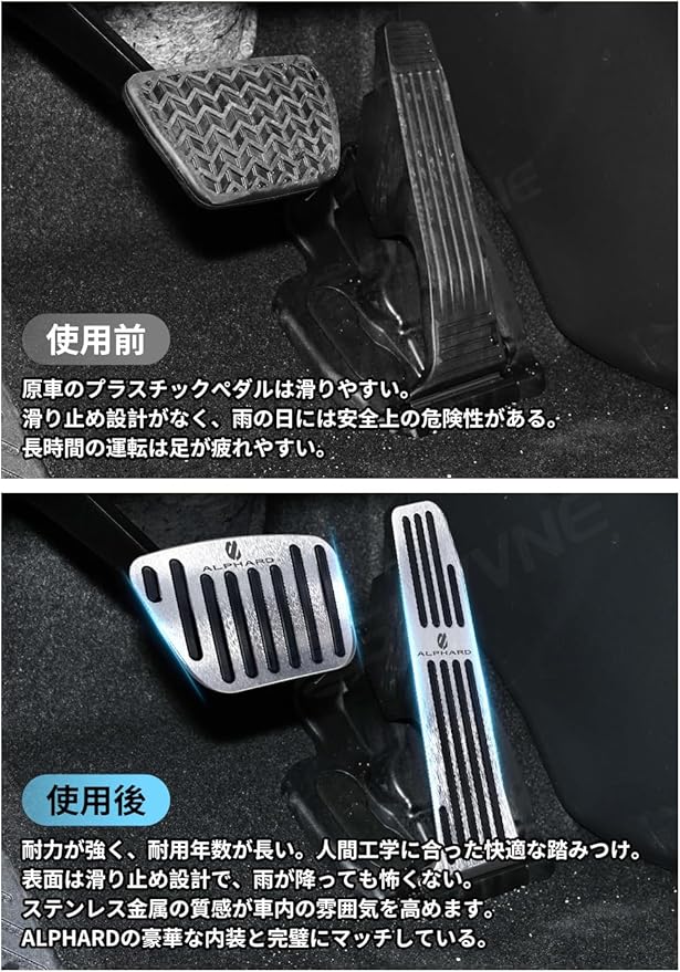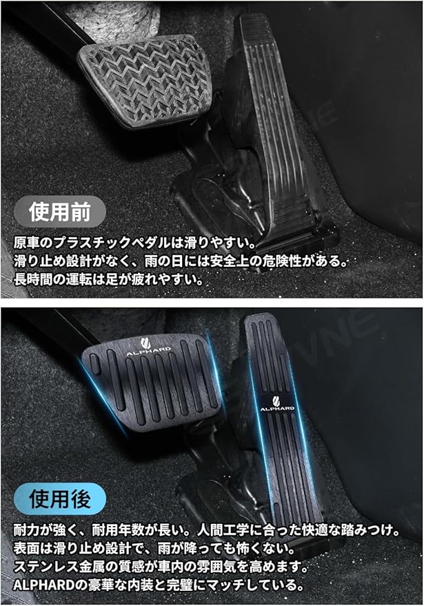 SUVVNE(スヴニ) アルファード 40系 アルミペダル 工具不要 ALPHARD AAHH40W AAHH45W (2023年6月~現行) 専用設計 ブレーキ アクセル カバー 防キズ 防汚れ 滑り止め 内装パーツ 日本語の説明書付き 2点セット(ブラック)