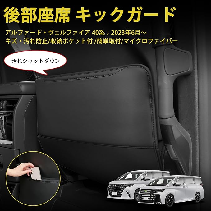 トヨタ 新型 アルファード 40系 ヴェルファイア キックガード 後部座席 シートバックカバー シートバックプロテクター ALPHARD VELLFIRE 40系 2023年~現行 専用 保護マット 収納ポケット付き 汚れ/傷防止 アクセサリー カスタムパーツ マイクロファイバー ブラック 2Pセット