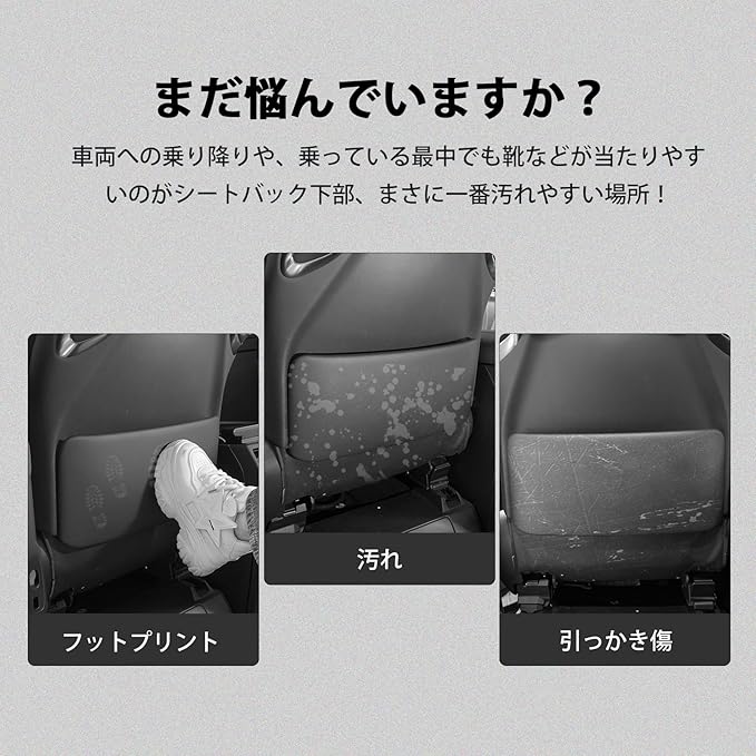 3.【高級マイクロファイバー&お手入れ簡単】車内雰囲気に溶け込みやすいブラック、気品に満ちた車内空間に違和感なく装着できます。後部座席のお子さまがシートを蹴って付ける汚れや傷なども心配することなく、雑巾で簡単に拭き取ります。また、耐摩耗性および耐久性に優れる高級マイクロファイバーを採用し、厚み1.8㎜の高密度でクッション性が高く、車体に優しいです。